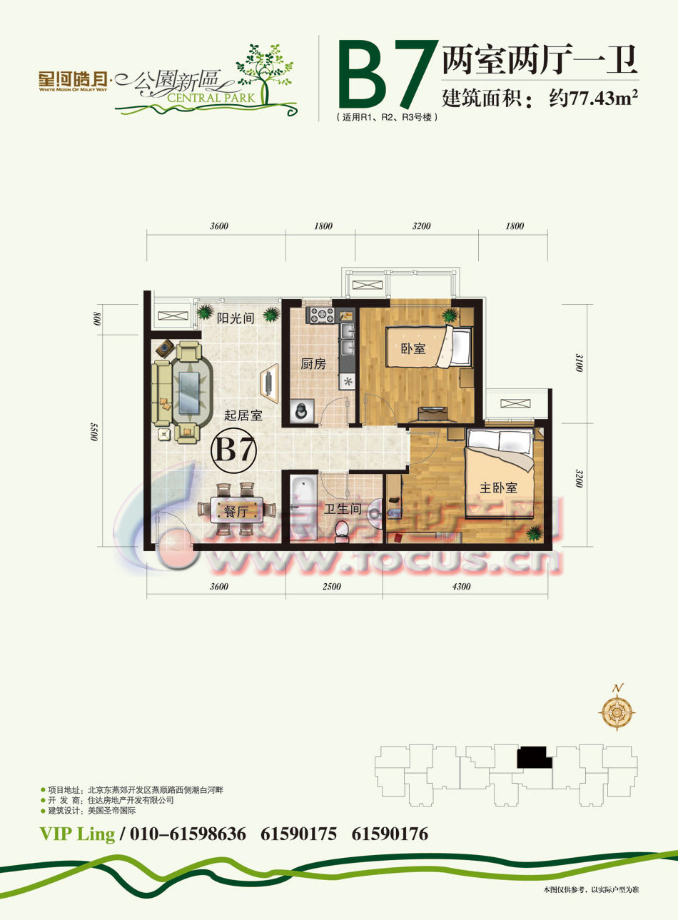 2室2厅1卫-公园新区R1-R3号楼B7两室两厅一卫77.43平方米