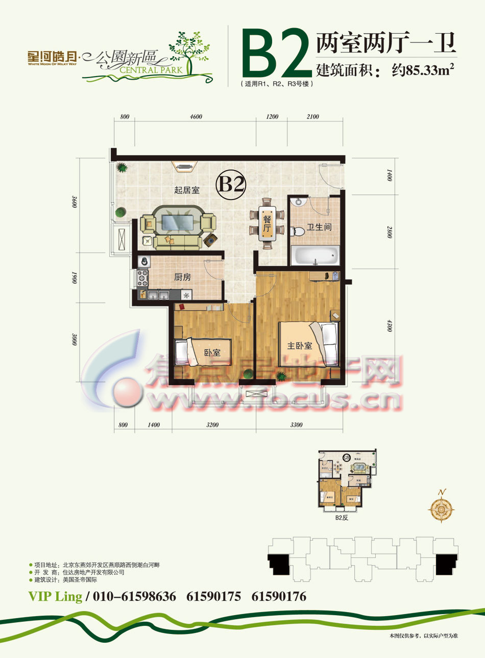 2室2厅1卫-公园新区R1-R3号楼B2两室两厅一卫85.33平方米