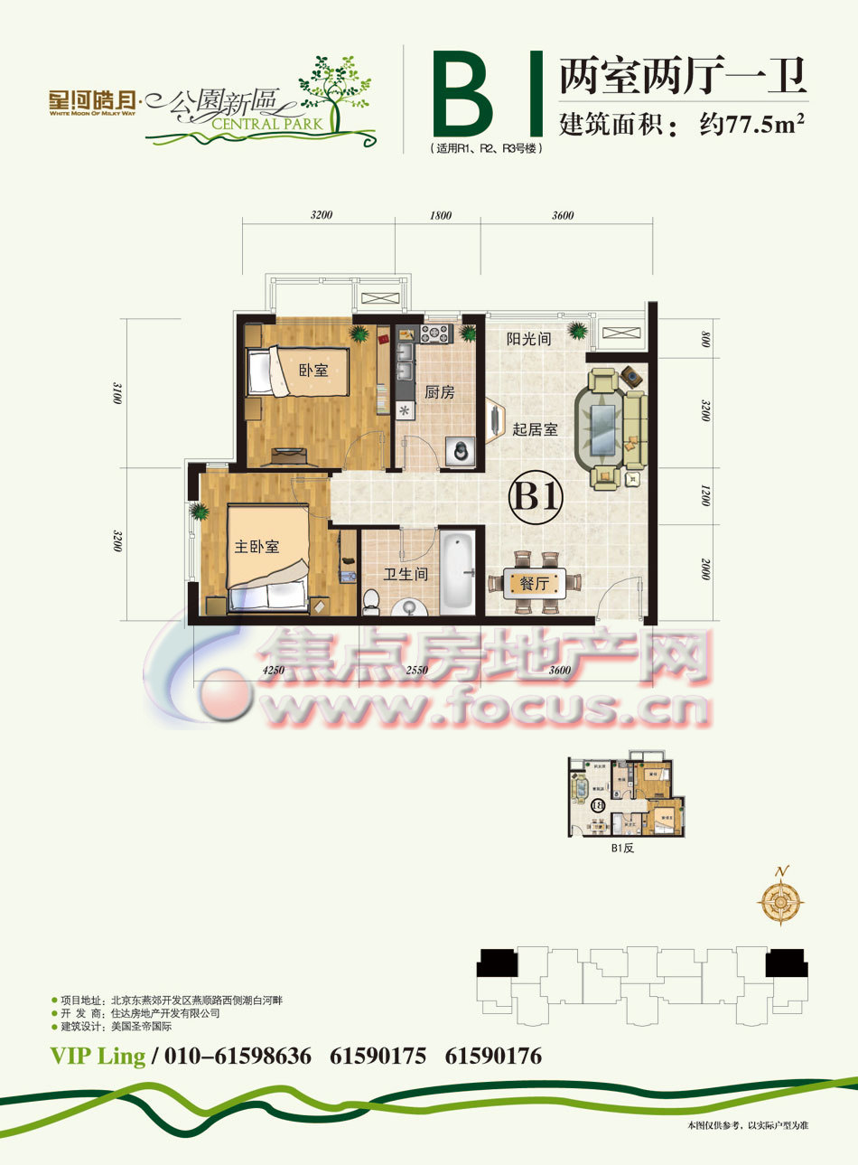 2室2厅1卫-公园新区R1-R3号楼B1两室两厅一卫77.5平方米