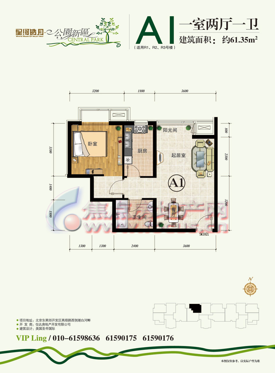 1室2厅1卫-公园新区R1-R3号楼A1一室两厅一卫61.35平方米