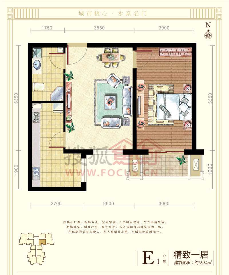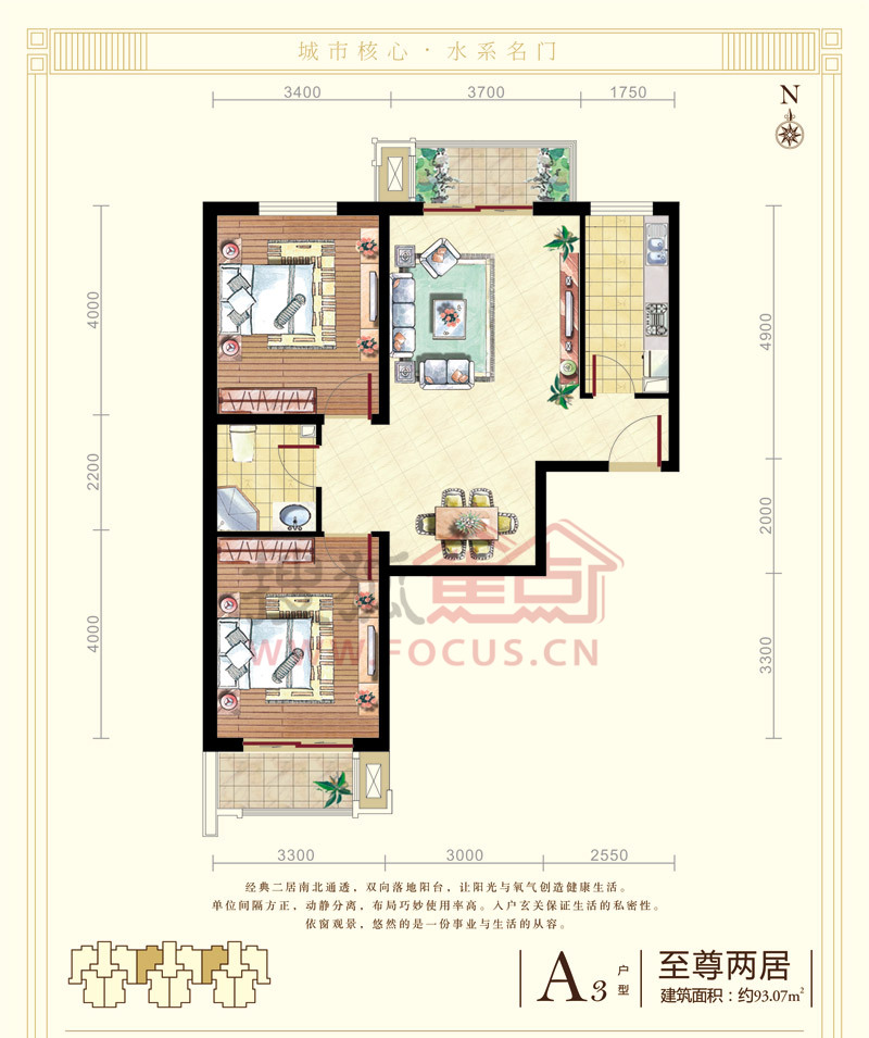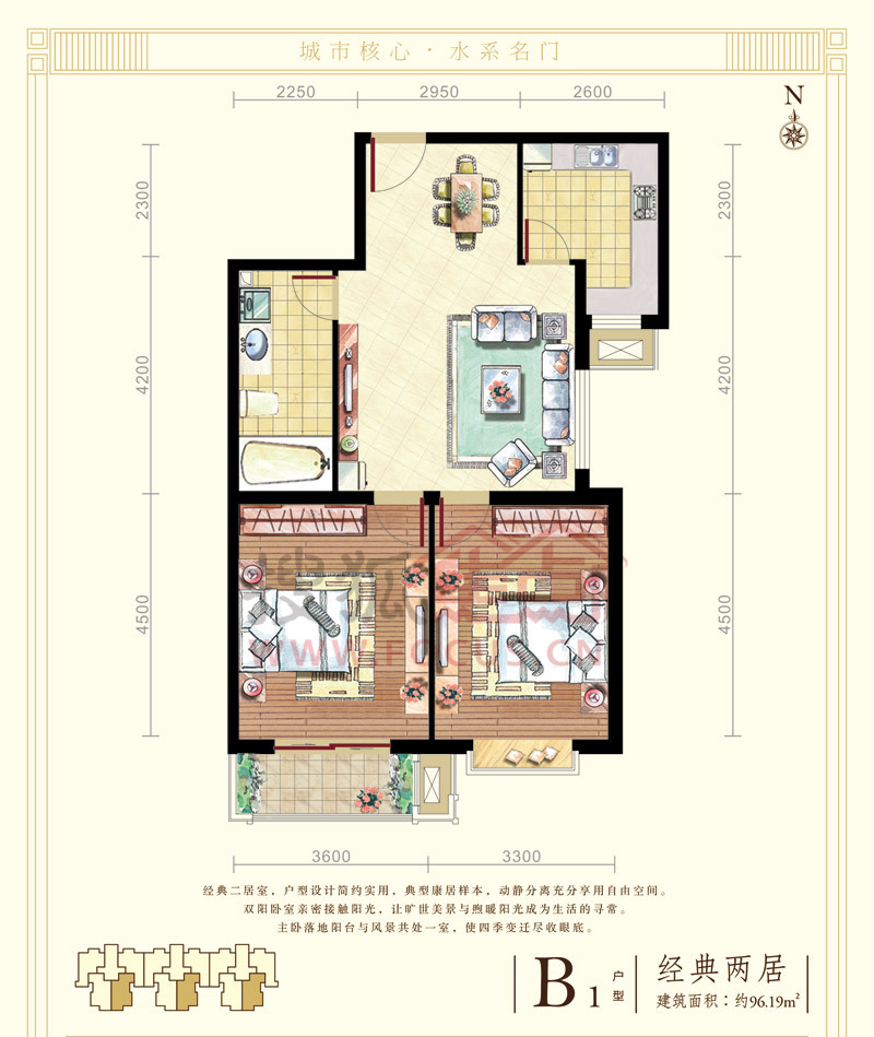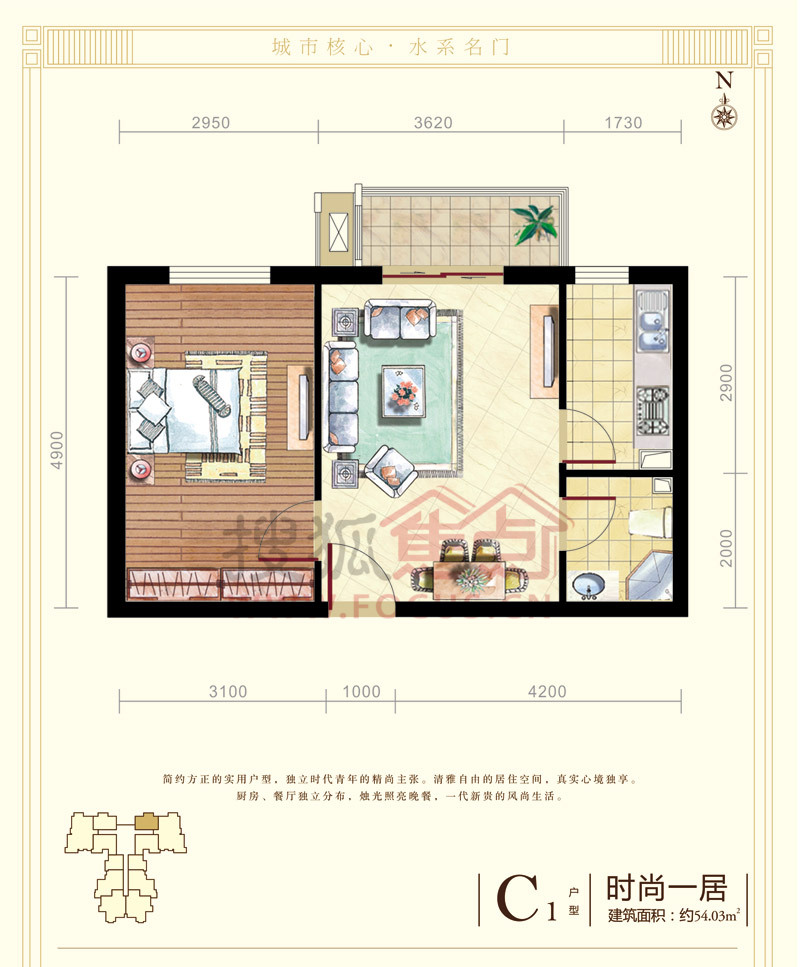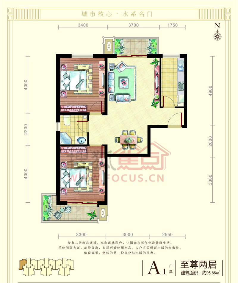 ①所有户型均方正,布局紧凑合理,居有较高的实用率,避免了不必要的浪费。