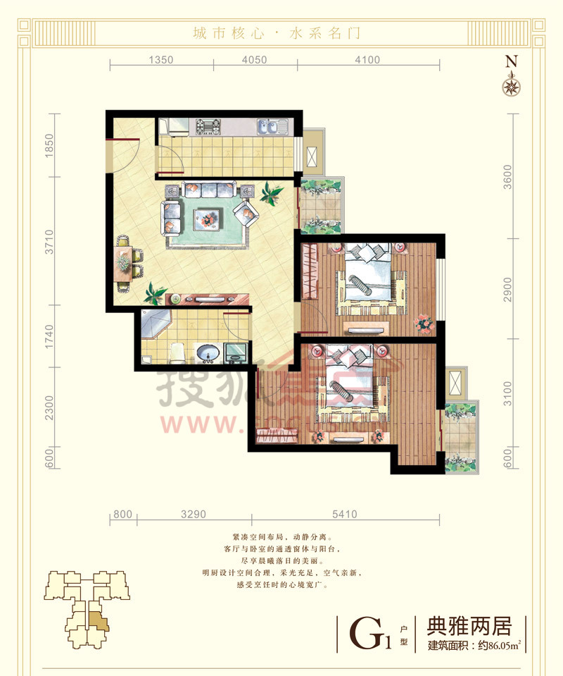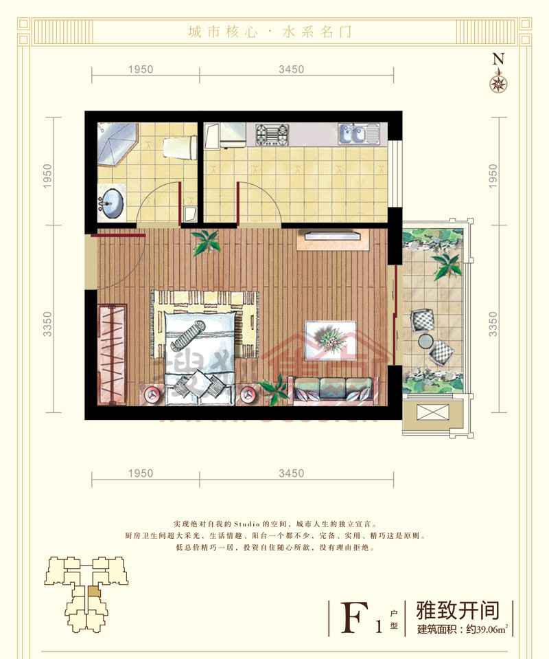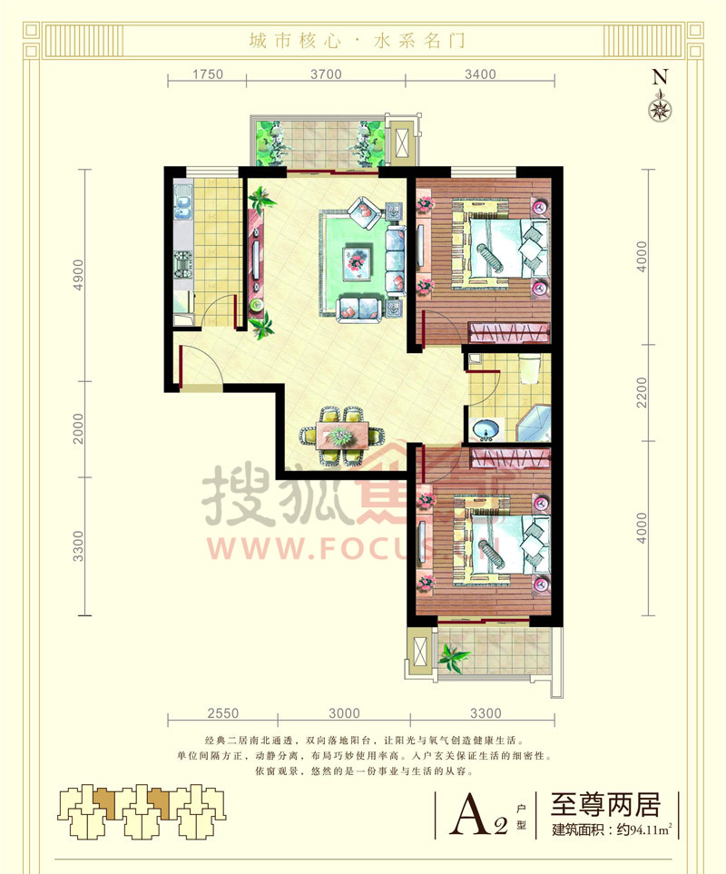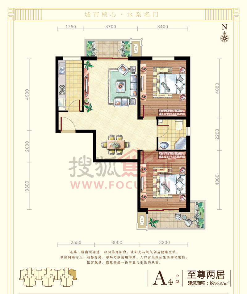 ①所有户型均方正,布局紧凑合理,居有较高的实用率,避免了不必要的浪费。