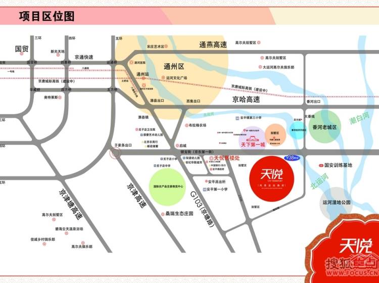 天悦,地处香河安平平安大街,中央生活区,周边交通立体成熟,便捷路网四通八达,距京沈高速公路、京津塘高速二线仅10分钟车程。小区正门即为938公交始发站,交通十分方便。天悦远可眺大运河畔,近可赏国家AAAA级旅游风景景区 ——天下排名前列城,观景之惬意尽收方寸之间。360度皇家全景体验 ,缔造唯美生活景观,是其专属私家礼遇。项目紧邻规划中的的京东排名前列街,堪称京东王府井,未来升值潜力无限。