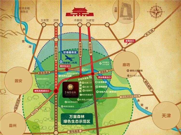 内部配套: 波士顿风情街、温泉度假酒店、健康中心、户外运动场、森林步道、国际双语幼儿园、国际小学、私家农场等