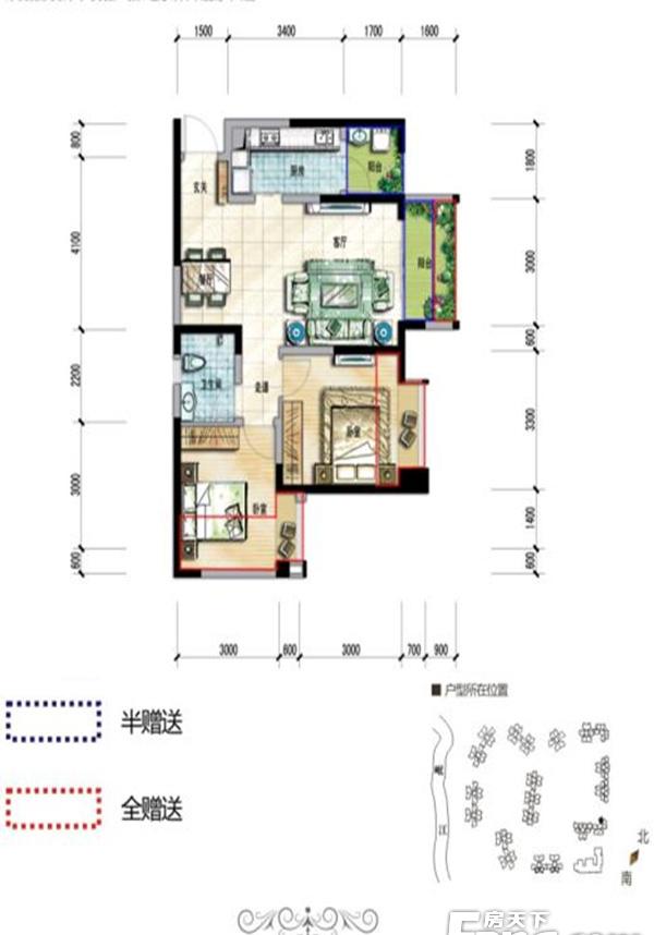 34万/套 建面69.92m²