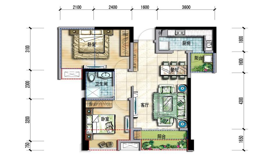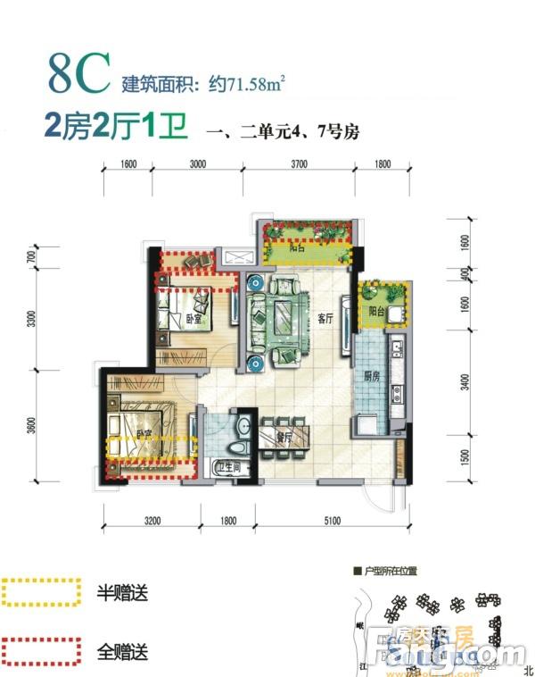 2室2厅1卫-8C户型