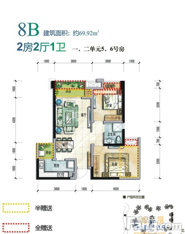 2室2厅1卫-8B户型