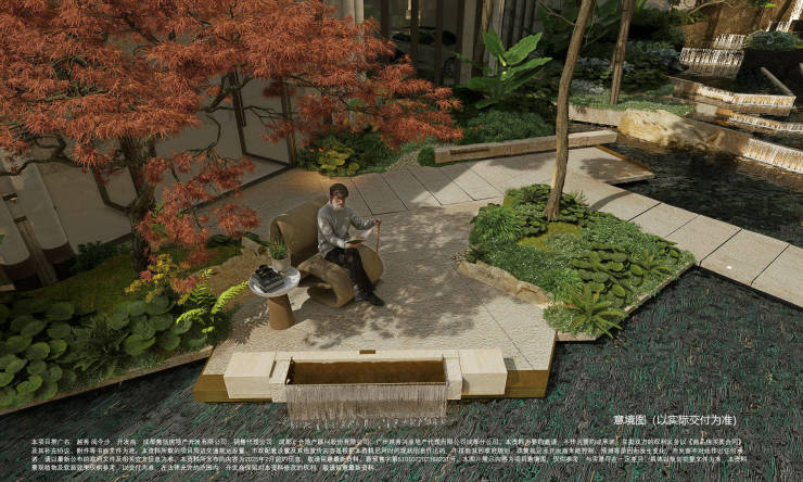 【高山流水遇知音】不出城郭而获山水之怡,身居闹市而有林泉之致复刻古代闲人志士曲水流觞的雅韵盛宴;衔接水庭,雨天可静观涟漪、聆听滴答声,契合“巴山夜雨”的诗意栖居;煮茶听雨,檐下一天,偷得浮生半日闲。