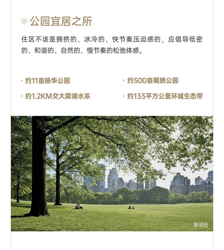 【产品观3——自然画境】红线内外一体化打造约4.7万方景观面积,规划一园·两厅·三核·九院·两环,跨界联合成都植物园,打造节气植物园,于城市中营造一座自然森岛。扬华公园——公园归家,让回家成为一场旅行