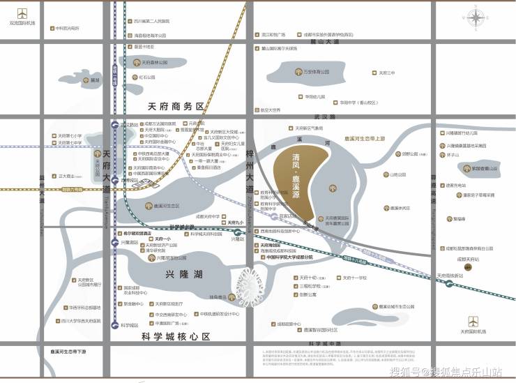 [交通]紧邻梓州大道、天府大道、武汉路、山东大道、东山快速通道、成自泸高速等地铁19号线(在建)、27号线(规划)在侧;近地铁1号线、18号线距兴隆湖约5分钟车程距双流机场约40分钟车程,地铁18号线直达天府国际机场