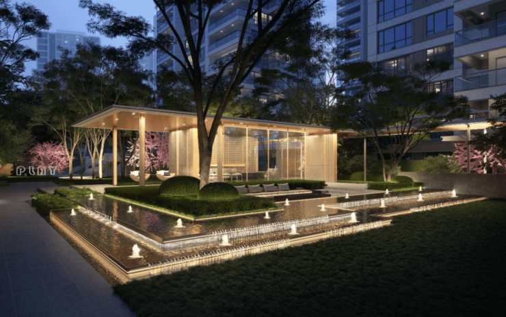 凌云阁邀请广州怡境规划设计有限公司设计宅居景观(建发、香港置地亦有产品出自他手),将安缦式度假园林的雅奢格调及静谧内敛的自然风光引入项目设计。所见及所享即是最好的诠释。沐林,临水,听泉,自然山林、林间溪流瀑布坐落其间,园路沐浴于林间繁花,中庭特色风情的花园空间,舒适的空间比例和园林布景景观完美地融合在一起,独显凌云阁饱满诗意。