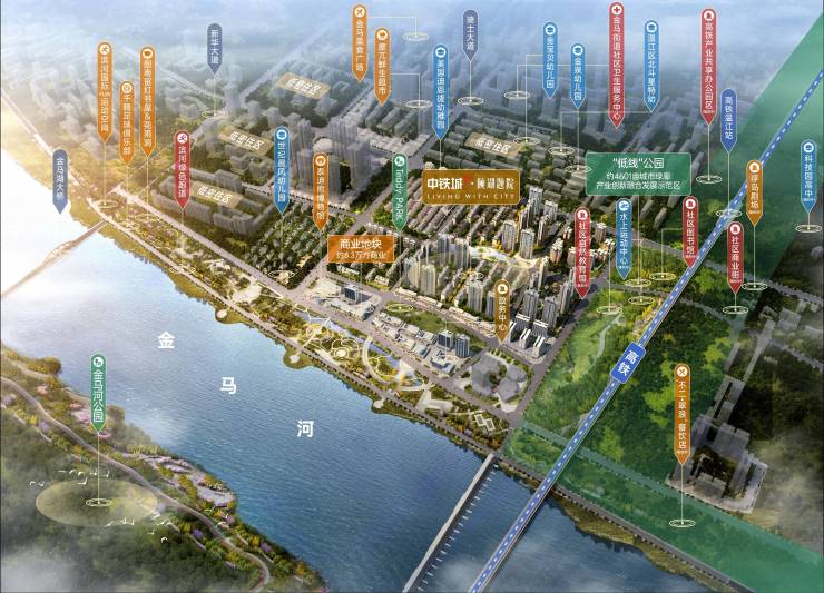 约76.1公里金马河、滨河公园、鲁家滩湿地公园、金马国际体育城马术公园等超1000亩滨河公园,生态资源环绕,主城西生态宜居大境。