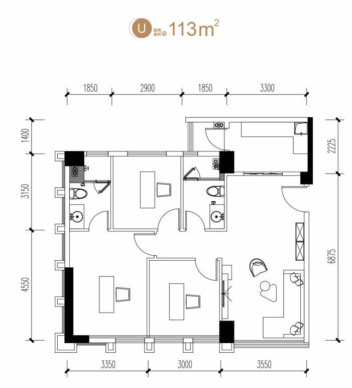 户型:标间(约43—52㎡)/套一(约62—67㎡)/套二(约67—87㎡)/套三(约84—117㎡)