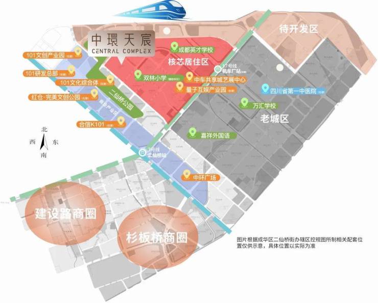 根据2017年提出的“中优”战略,成都规划有「两中七副」九大中心:主城三环内只有两个发展中心,一个是天府锦城中心、另外一个就是项目所处的八里庄副中心。
