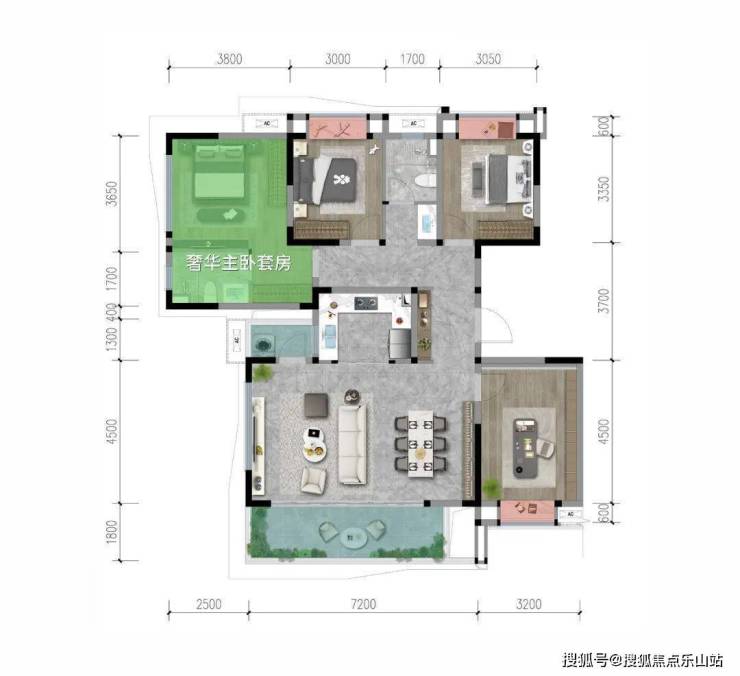 山河赋洋房产品展现出极强的产品力,我们结合建面约143.5㎡套四户型来感受下。