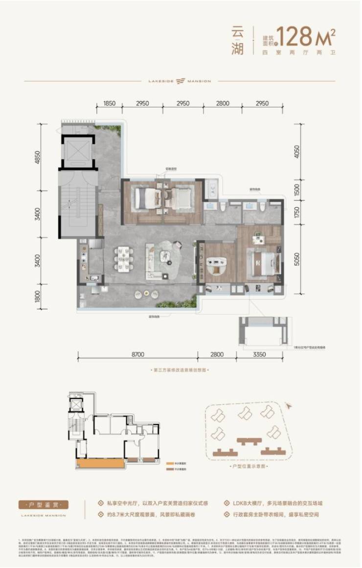 项目首期三号地块占地约53亩,容积率2.0,整体由3栋2T2/10层洋房(128㎡户型)+6栋2T4/22-24F高层(107㎡/118㎡户型)+1栋商业组成