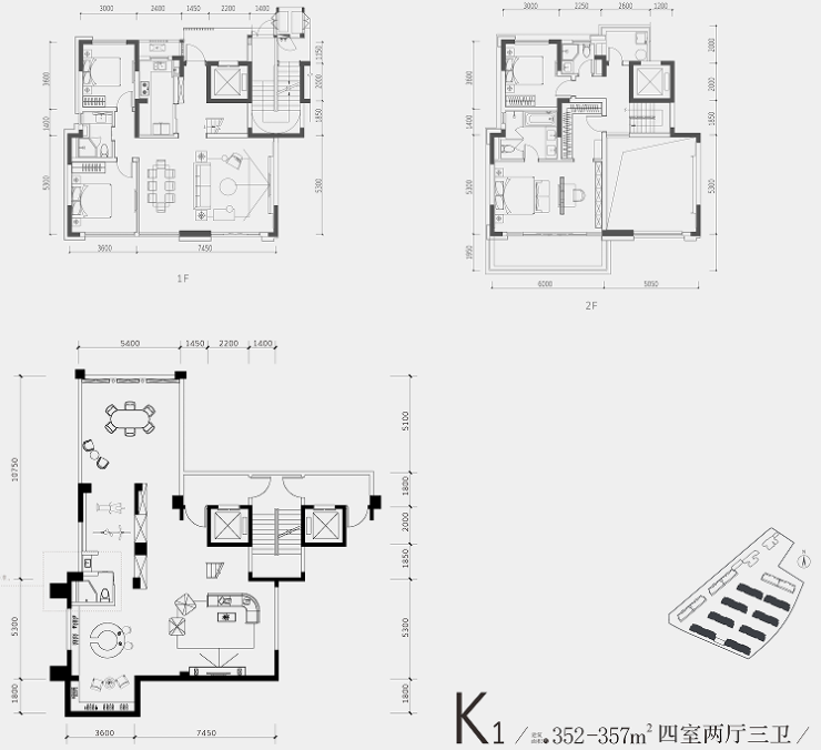 叠拼户型:建面约209-357㎡