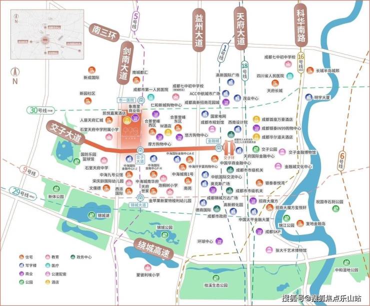 金融城交子大道——成都金融城黄金中轴之上,项目距离城市新地标双子塔仅1.7公里,地铁5号线交子大道地铁口直达!