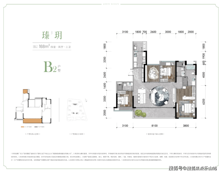 低密宜居:占地54亩,容积率仅2.0,11栋12-17F南北朝向住宅围合布局,最大楼间距超80米,形成开阔中庭。