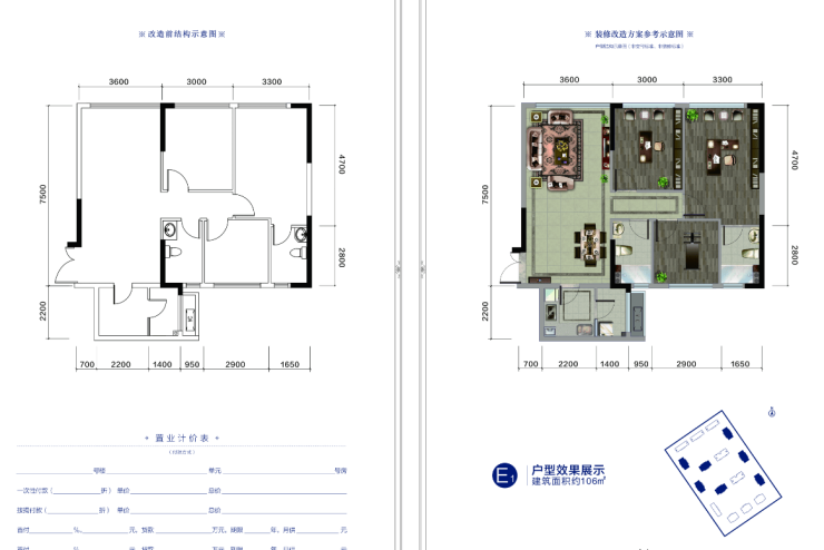 SOHO:E1户型建筑面积约106㎡
