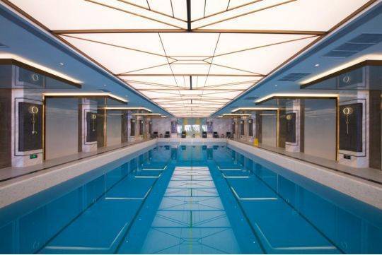 在精装和配套上,金玉府也不负“府系”之名,中央空调、新风系统、地暖等一应俱全,双中庭+恒温泳池铂金会所的豪华设置,即使在豪宅中也不多见。