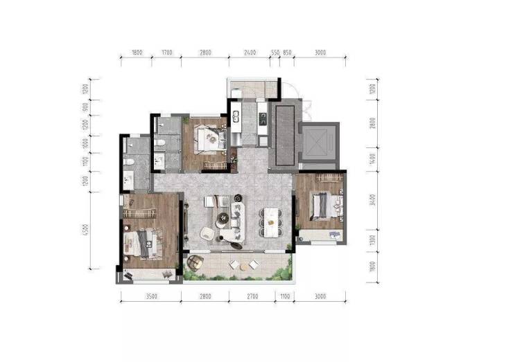 包含了美的TR-S中央空调、瑞士森德的新风系统、全屋地暖,三件套全部齐全,其它如入户门、屋内套装门、地砖、地板、柜体、厨电等则均使用的是一线品牌,比如索福套装门、蒙娜丽莎地砖、老板牌厨房烟机、 巨田全屋定制柜体等 ,除此之外, 金隅还使用了一线品牌TOT O的卫浴