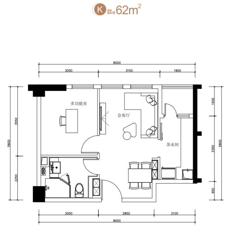 户型:标间(约43—52㎡)/套一(约62—67㎡)/套二(约67—87㎡)/套三(约84—117㎡)