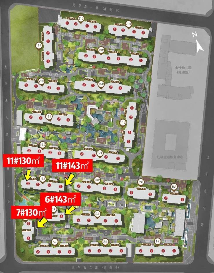 〖 项 目 基 础 信 息 〗 ※占地面积:107亩※建筑面积:约16.4万㎡※在售面积:130-191㎡(四房)※在售总价:430-640万※在售楼栋:主推6栋、7栋、11栋※总户数:1128户※容积率:2.3※层高:3米※装修标准:3500(三大件)※公摊:18%※交房时间:2027.3.31※绿化率:35%※产品:小高层13-17F※梯互比:2T2 ※车位比:1:1.74(1972个)※物业费:4.1元/㎡※物业:建发物业※开发商:成都兆蓉晟房地产开发有限公司