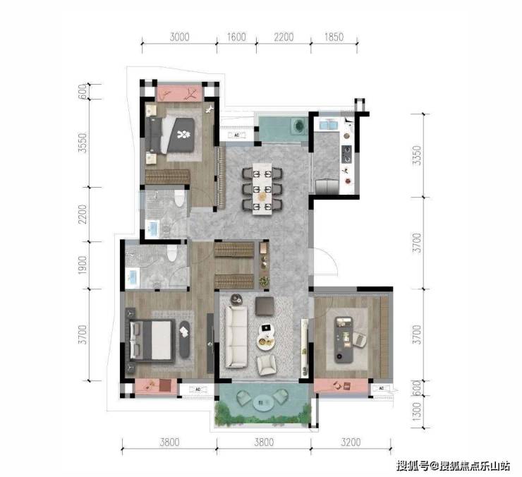 山河赋洋房产品展现出极强的产品力,我们结合建面约143.5㎡套四户型来感受下。