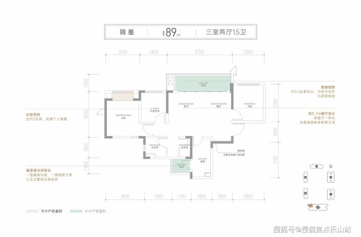 餐客厅一体化,增加空间流动感瞰景南北双阳台,漫享舒居品质生活迭代X空间,成就多样生活约5m全景阳台