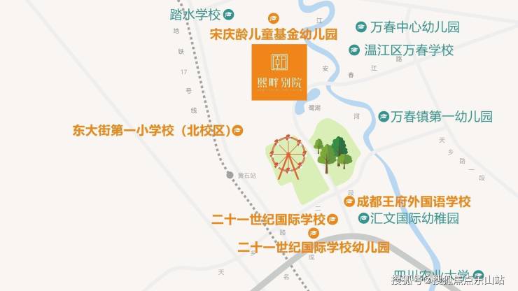 2公里范围内10余所名校,北京21世纪国际学校、温江东一学校、宋庆龄仁爱幼儿园、王府外国语等多所名校环绕