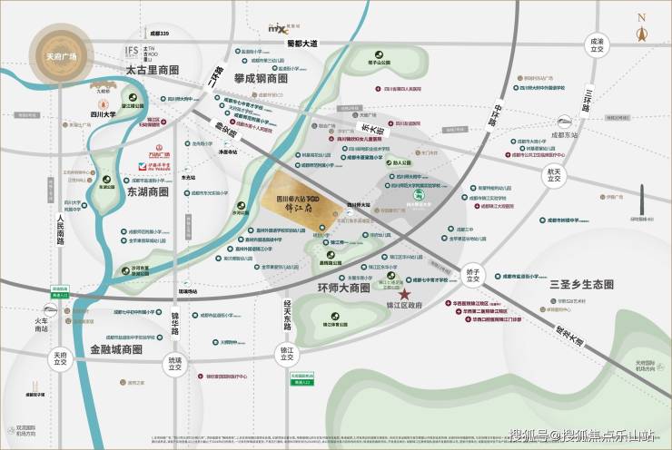 ◎川师板块—位于锦江几何正芯,上承太古里、东大街、攀成钢主城儫宅发展轴,下接高端儫宅区三圣乡,千亿产业群集白鹭湾。文脉氤氲的天赋贵壤,以20载奢藏留白土地,启幕锦江区首座峯层TOD迭新作品,承接主城高端改善人居新篇。