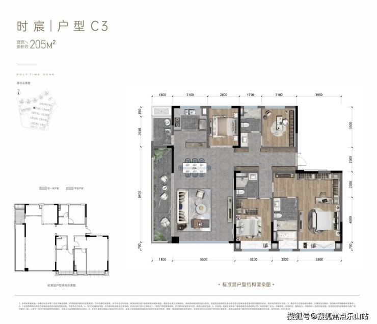 面积户型亮点136㎡全景方厅+双套房设计158㎡独立家政间+双明卫178㎡约7.2m横厅+双主卧套房205-208㎡270°观景阳台+工人房