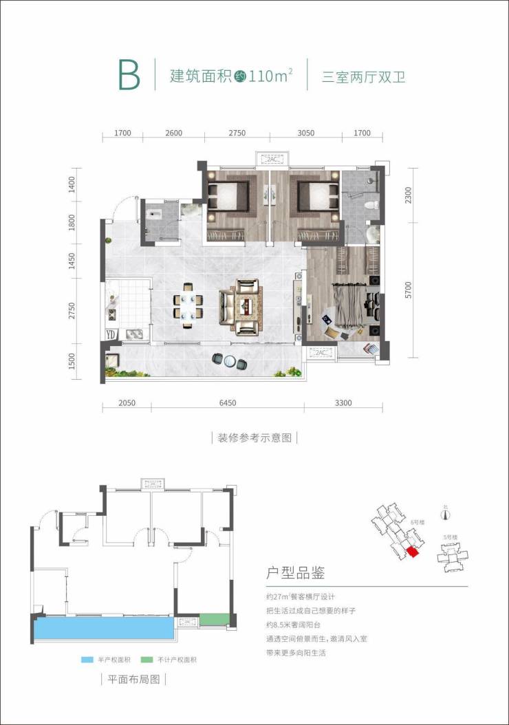 建筑面积约110㎡ 三室两厅两卫