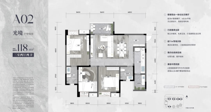 118㎡三房:双卫设计+6米横厅,首改标杆