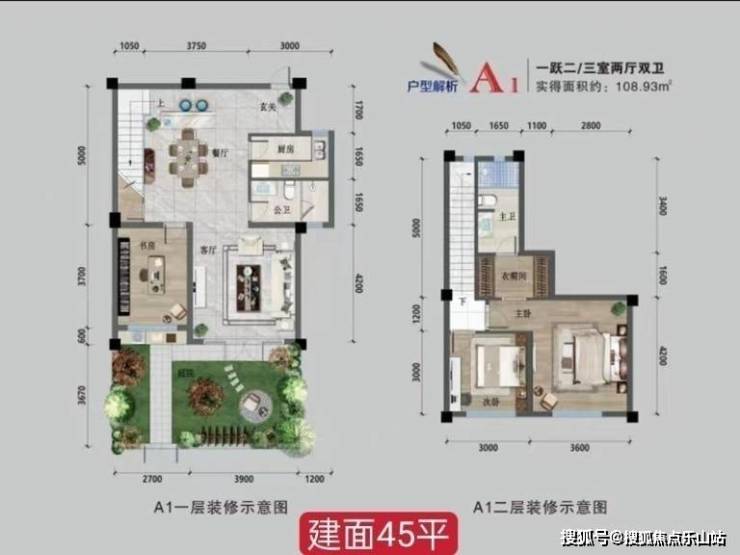 一楼:45.29平,实得110平,套三118-125万