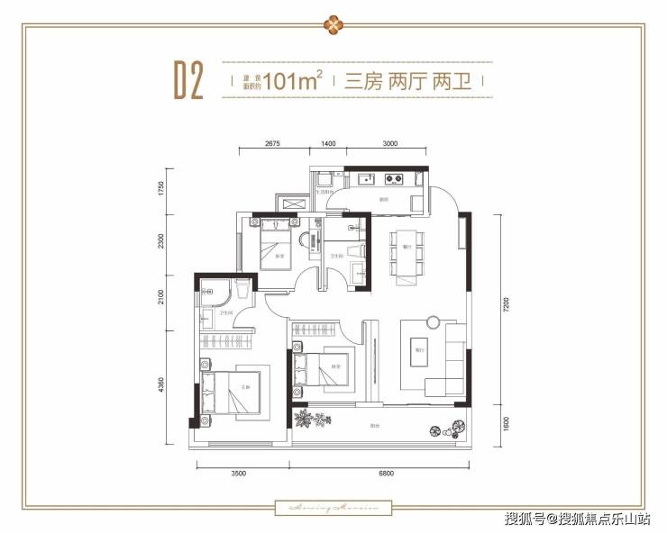 建面约101㎡ 三室两厅两卫