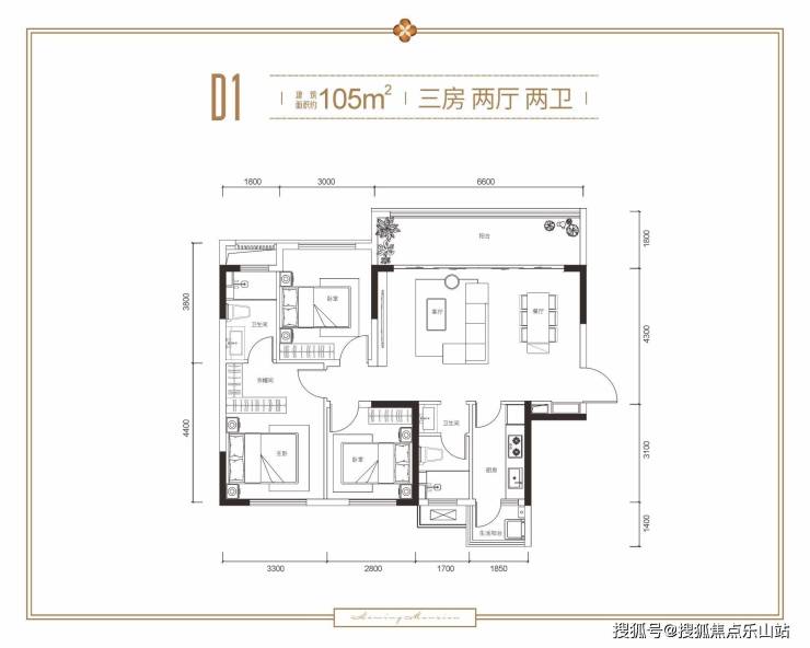 建面约105㎡ 三室两厅两卫