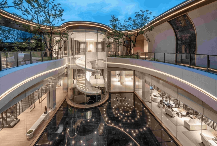 【圈层奢享,塔尖际会】在约39亩的地块上,为236户住宅业主,打造约1000㎡的下沉会所。会所由仁和物业提供专属服务,为少数人实现配套真正长期有效、功能可持续使用的雅致场所