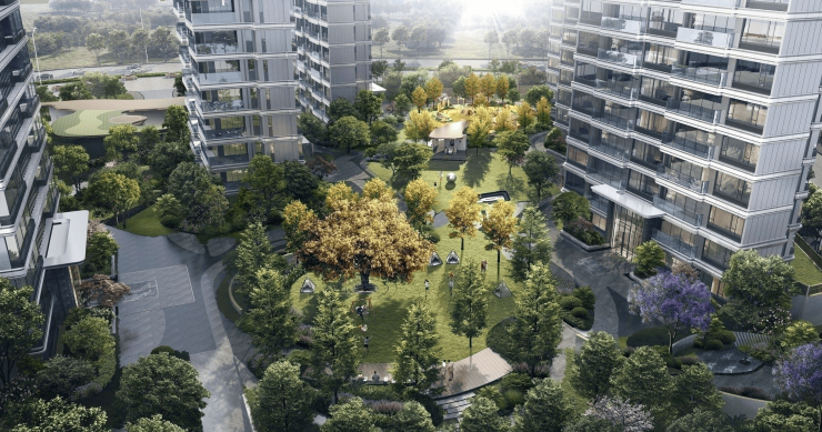 南面228亩景观带、西面约7000㎡银杏公园、北面75亩梵谷公园,三公园环绕,环氧畅享绿境;直面1.5万亩三圣乡公园,头排景观,极佳视野