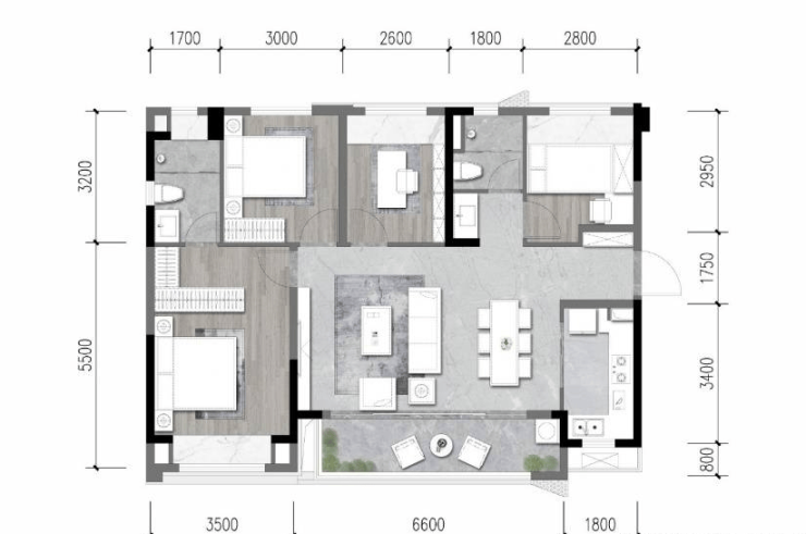 131㎡:四室两厅三卫,7.5米L型阳台,南北通透