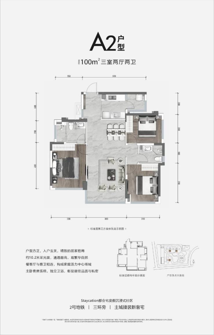 梯户比:2T3户、2T4户,面积:100㎡套三-123㎡套四