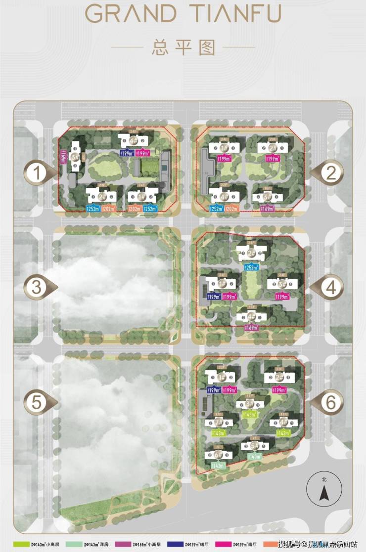 纯板式2T2户:南北通透,户户得房率100%,143-252㎡主力户型,全龄段改善需求覆盖。