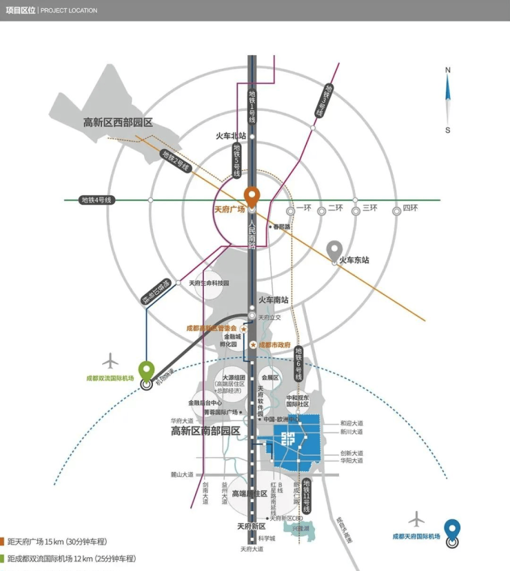 地铁:6号线新通大道站(约200m)、规划20号线和22号线(五期)主要道路:绕城(四环)、麓山大道(五环)、天府大道、梓州大道、蓉遵高速