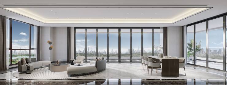 当代大平层先锋创著/用空间艺术缔造美学领域/私享双重入户系统南北通透,6.8⽶纵横多变双厅11.9⽶宽境阳台,尽享奢阔景观⾯