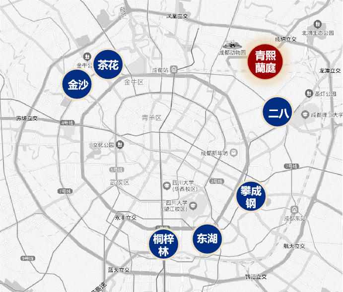 除此之外,项目周边有海滨公园、北湖生态公园、五彩公园、成都动物园等优质生态资源环伺,医疗上也可就近享受成都市成华区第三人民医院、工业416医院、华福医院等医疗资源。