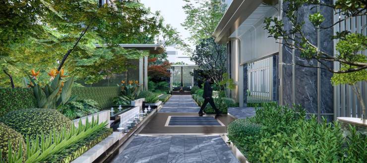 园林景观:以“假日繁华,海派华章”为主题,打造了一轴一环三进五园的进制空间,营造出自然与繁华共融,生活与度假共叙的人居典范社区。小区树木以乌桕,蓝花楹,紫薇等名贵树种为主;水景体系贯穿小区。园林造价成本将是整个区域最高。