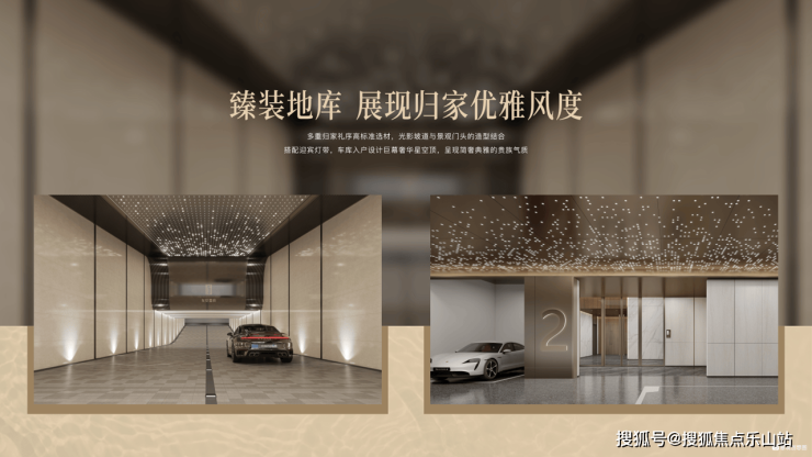 臻装地库——打造地下光厅归家,地下归家大堂采用劳斯莱斯同款星空顶设计,搭配迎宾灯带,增强归家细节品质。