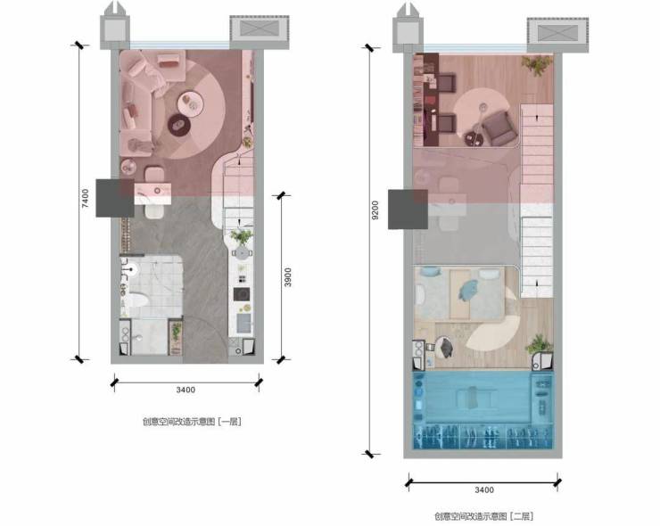 云端资产裂变:30㎡LOFT双层设计,实得约45㎡,租金对标中环壹号达3000元/月。
