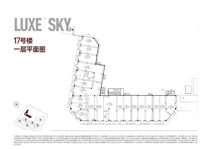 17栋:1F合计21套商铺,面积1560.28㎡。面积区间50.76-135.15㎡。2F合计01套商铺,面积674.33㎡。